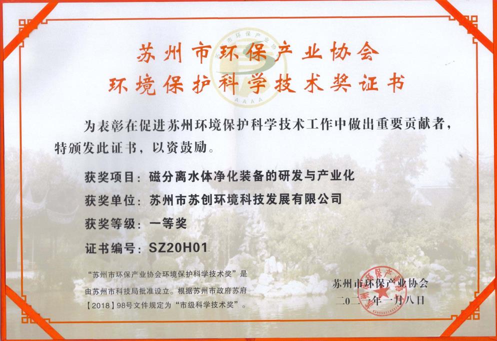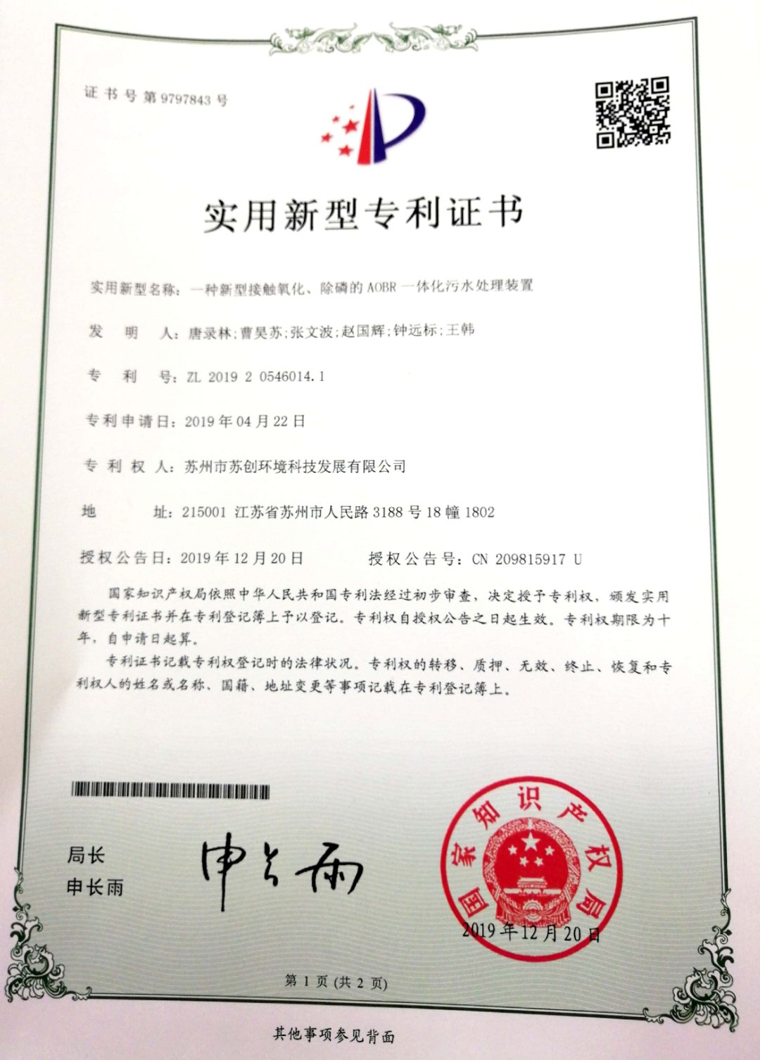 磁分離+反硝化+曝氣生物濾池一體化裝備 采用磁沉淀和曝氣生物濾池相結(jié)合的水體凈化工藝蘇創(chuàng)環(huán)境 · 專利與榮譽成果